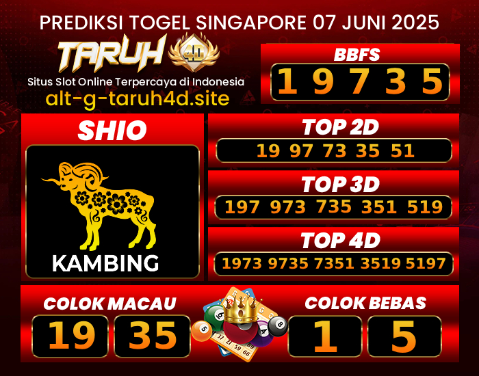 TARUH4D PREDIKSI SINGAPORE POOLS TOGEL : 07 JUNI 2025