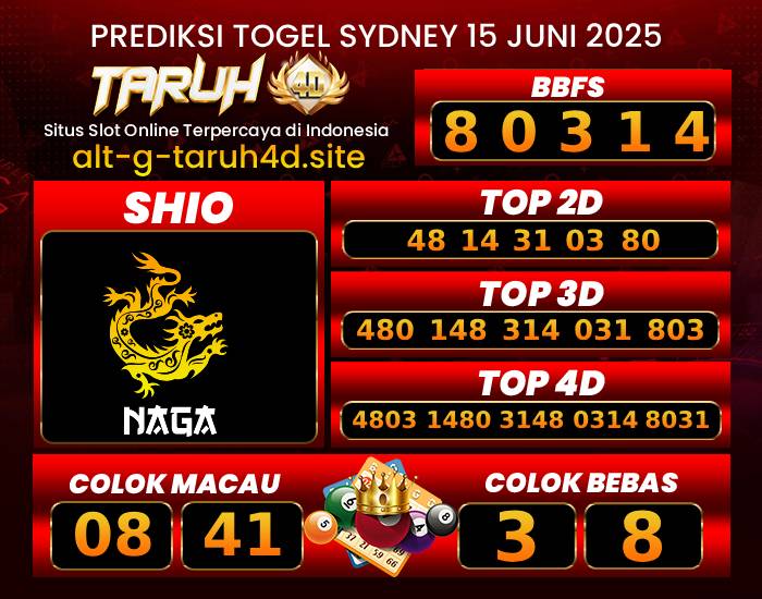 TARUH4D PREDIKSI SYDNEY LOTTO TOGEL : 15 JUNI 2025