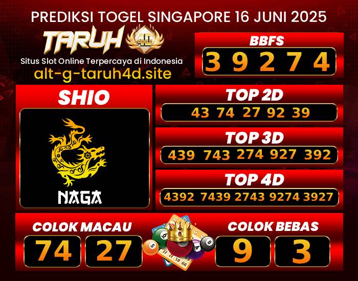 TARUH4D PREDIKSI SINGAPORE POOLS TOGEL : 16 JUNI 2025