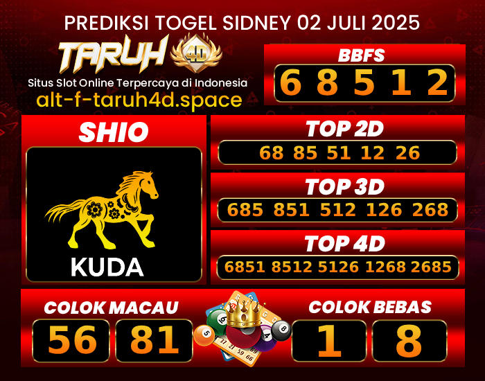 TARUH4D PREDIKSI SYDNEY LOTTO TOGEL : 02 JULI 2025