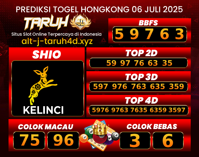 TARUH4D PREDIKSI HONGKONG LOTTO TOGEL : 06 JULI 2025