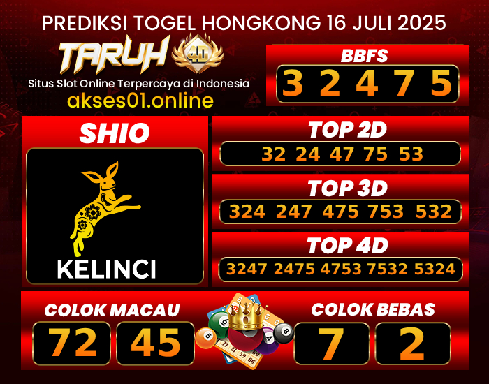 TARUH4D PREDIKSI HONGKONG LOTTO TOGEL : 16 JULI 2025