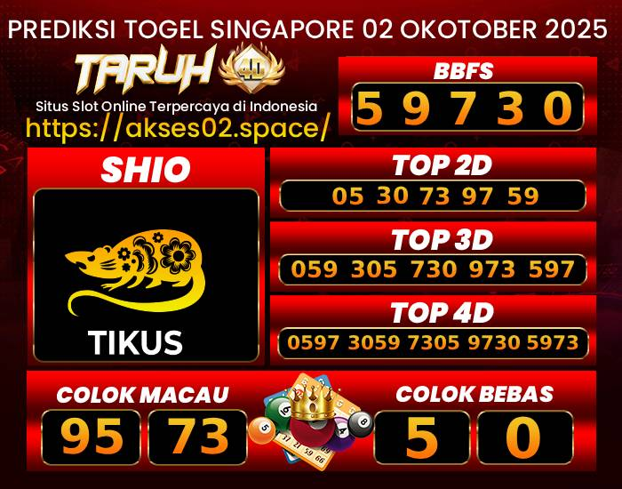 TARUH4D PREDIKSI SINGAPORE POOLS TOGEL : 02 OKTOBER 2025