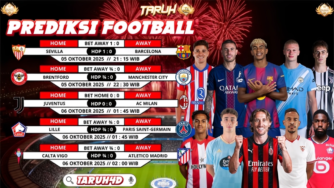 Pertandingan sepak bola selalu menarik untuk diprediksi, apalagi jika dipasang taruhan. Dengan perkembangan dunia taruhan online seperti taruh4d, membuat pertandingan semakin seru untuk diikuti. Banyak faktor yang perlu dipertimbangkan saat memprediksi pertandingan sepak bola, mulai dari performa tim, kondisi pemain, hingga rekor pertemuan sebelumnya.