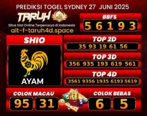 TARUH4D PREDIKSI SYDNEY LOTTO TOGEL : 28 JUNI 2025